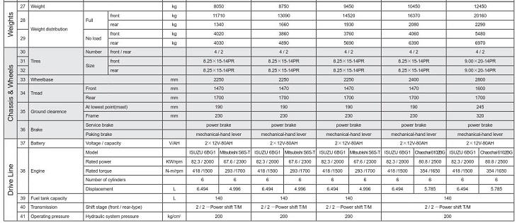 Powertrain combinations include ISUZU,CUMMINS turbo diesel engines